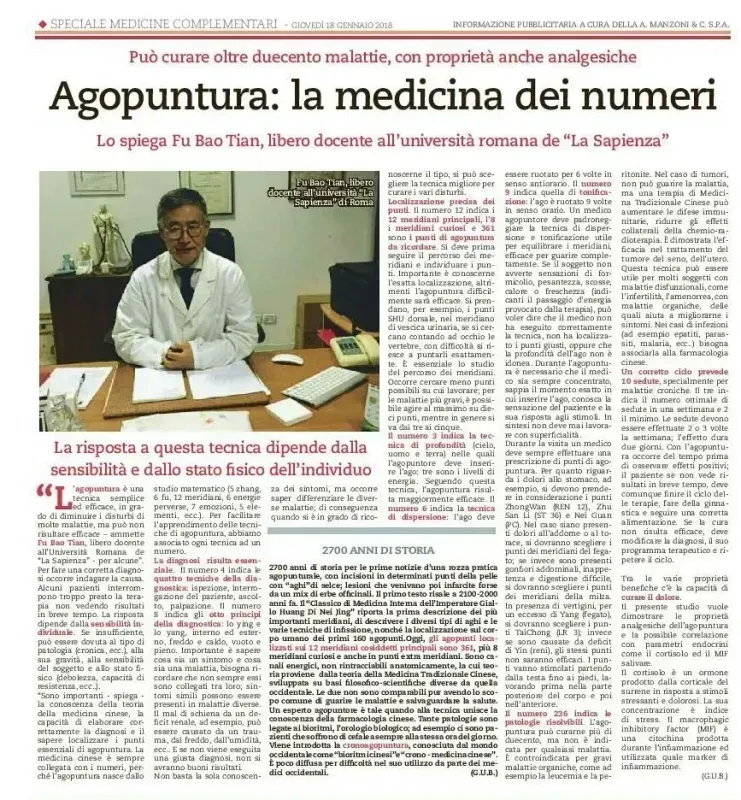 Il Prof. Dott. Fu Bao Tian, medico chirurgo con oltre 40 anni di esperienza, è specializzato in Agopuntura e Medicina Tradizionale Cinese, integrata con la medicina occidentale.